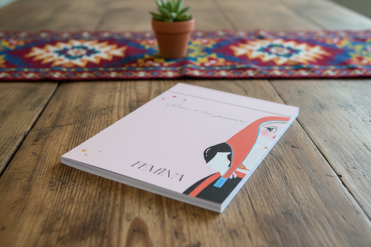 Femina è la rappresentazione dell'abito tradizionale sardo, in questo caso l'abito di Austis, un piccolo paese del centro Sardegna, simbolo di storia, tradizioni, appartenenza e bellezza senza tempo. Ogni dettaglio è stato illustrato con cura per raccontare l'eleganza e la orza della tradizione.